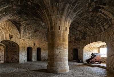 Il existe un dessin d'époque qui nous figure l'aspect de la salle voûtée. Grâce à l'intelligence artificielle, nous avons ici une vue de ce qui pouvait ressembler à cette salle. La comparaison avec Ambleteuse saute aux yeux !